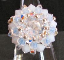 Un cabochon carré Swarovski Crystal est serti de 36 petites et moyennes toupies en cristal transparent, blanc opale et blanc mat... Rocailles argentées.Bague de taille moyenne, diamètre environ 18 mm. Choisissez votre taille ci-dessous. Consultez notre baguier pour déterminer la bonne taille à commander.