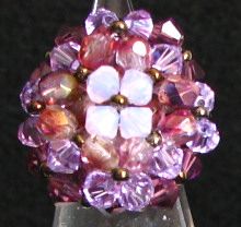 Une bague toute en rondeur "violet et amethyste" avec ses facettes Picasso à la double tonalité et ses toupies Swarovski transparentes ou opales. Diamètre de la bague : 22mm. Le kit comprend toutes fournitures et notice détaillée.