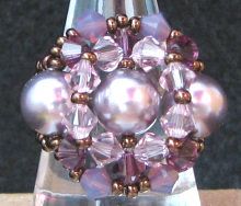 Une bague composée de perles nacrées Swarovski Mauve et de toupies dans des tons assortis dont la nouvelle couleur Swaroski : Cyclamen opal.