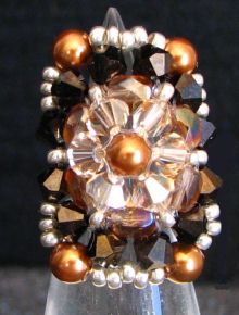 Au centre, et à chaque coin, une perle nacrée Swarovski Copper (cuivré), qui contraste avec les toupies centrales Crystal Golden shadow aux doux reflets dorés.