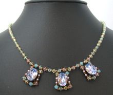 De tendres couleurs estivales pour ce collier original qui met en scène trois cabochons ovales de la dernière couleur Swarovski "Provence Lavender".
