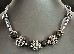 Les boules de perles sont encadrées de perles rondes à facettes en cristal noires.