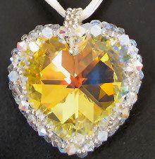 Ce gros pendentif aux couleurs de la gamme Cristalia est réalisé avec une sertissure de toupies Swarovski et de perles autour d'un coeur en cristal Swarovski de grande taille (40 mm).